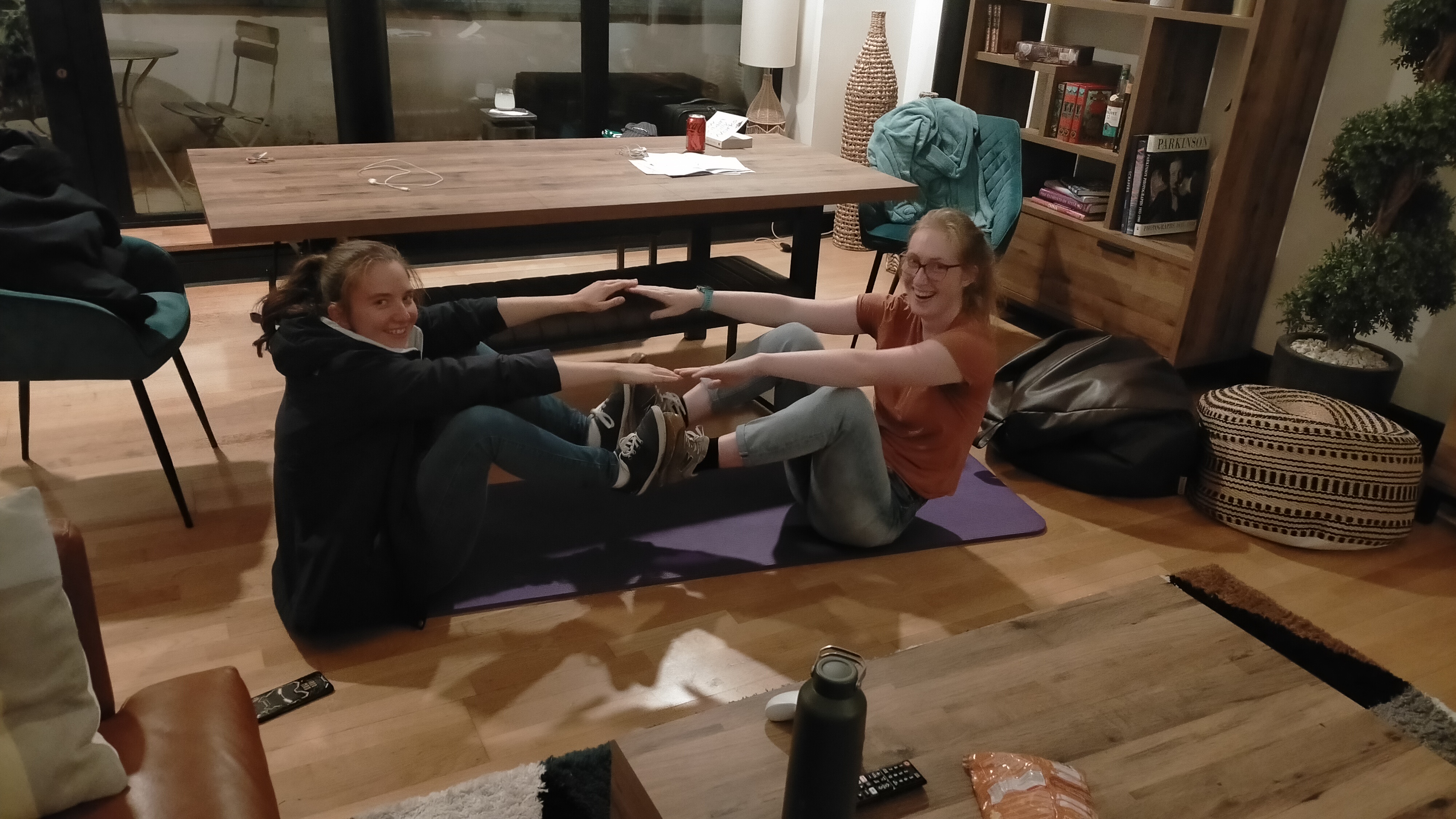 Two person cartwheel.